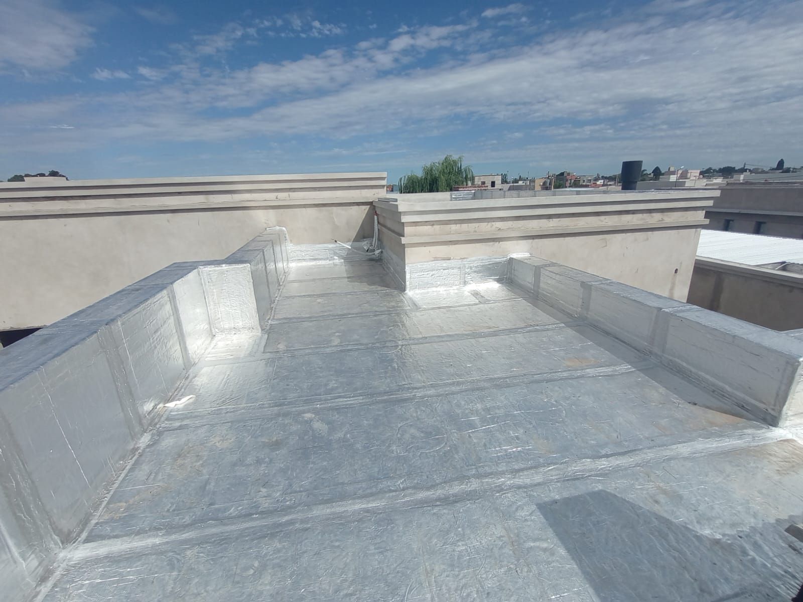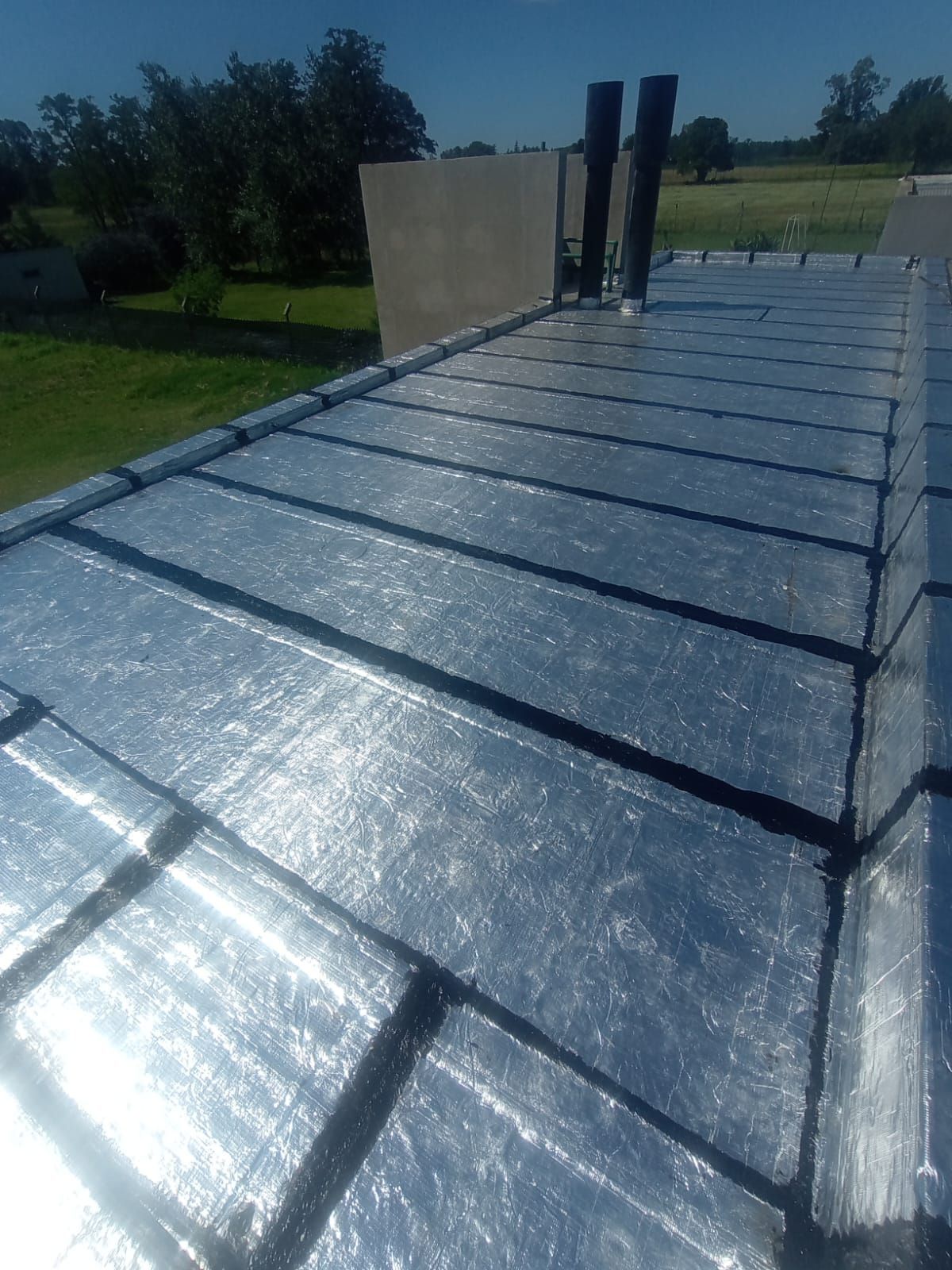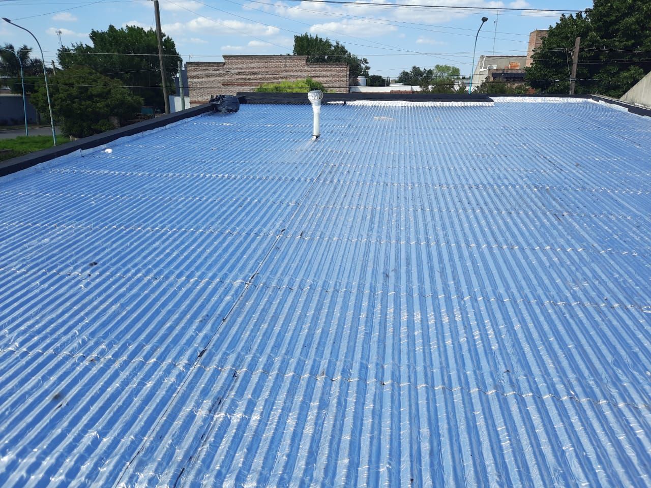 Impermeabilización de techos de losa y chapa de zinc. Utilizamos membranas asfálticas de las marcas Ormiflex y Kartonsec, con terminaciones en aluminio o en geotextil expuesto transitable.